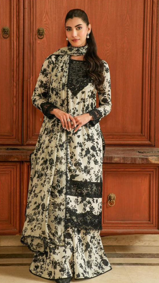 • Embellishments: Intricately finished neckline, daman, sleeves, and dupatta borders, giving the outfit a refined, ready-to-wear appeal.